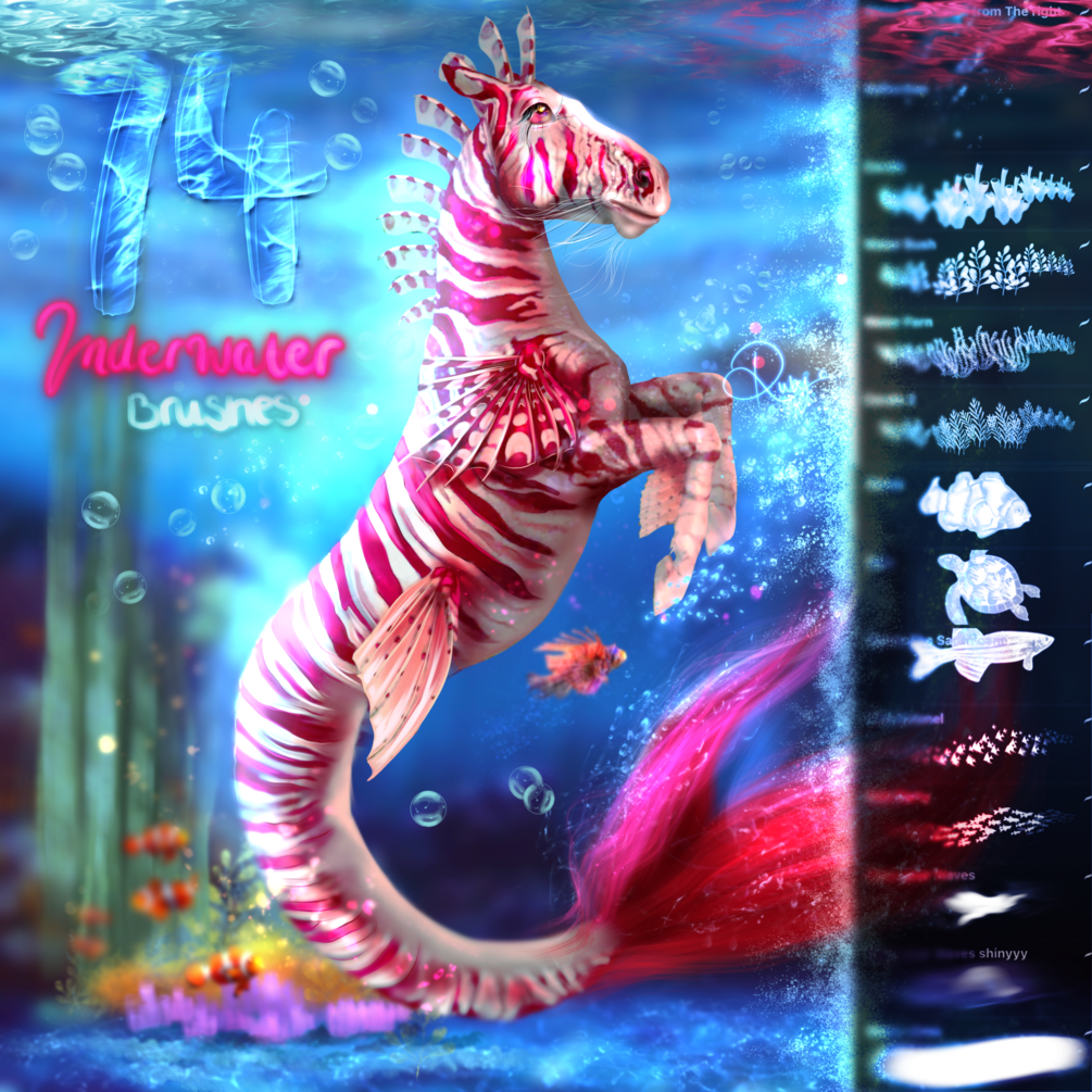 My brushes are very suitable for drawing these!!! Bubbles, algae, corals, mermaid fins!??!